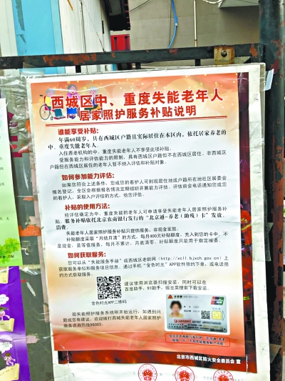 从2016年11月起,西城区开始试行中、重度失能老人居家服务补贴政策。凡年满60周岁,具有西城区户籍且居住在西城区,依托居家养老的中、重度失能老年人,都可以申领每月400元的服务补贴。补贴发放到“北京通——养老助残卡”中,可用于购买政府指定的养老照料、送餐、医疗机构的服务,余额月结月清。政策试行近两个月来,许多从未享受过专业技师上门助浴、按摩、理发等服务的失能老年人被打理得干干净净,长期照护失能老人的家属也得到了难得的喘息机会,新政受到老人和家属的交口称赞。不过也有市民反映,不知道为何补贴资金每月底余额自动归零?此外,一些服务的价格能否再低一些?