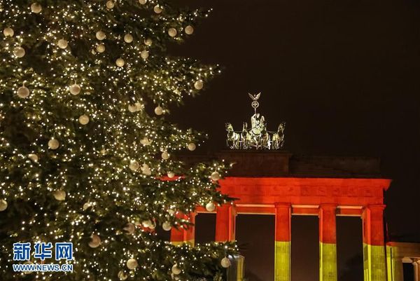 12月20日,在德国首都柏林,德国国旗样式的彩灯点亮勃兰登堡门,悼念圣诞集市袭击案遇难者。当日,柏林多地举行活动悼念圣诞集市袭击案遇难者。柏林19日发生货车冲入圣诞集市的恐怖袭击事件,造成至少12人死亡、49人受伤。新华社记者单宇琦摄