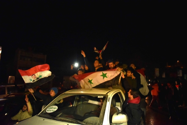 12月22日,在叙利亚北部城市阿勒颇,民众上街庆祝叙政府军收复该市。