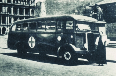 宋庆龄在国外赠延安救护车前留影