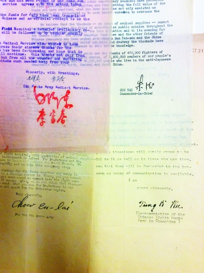 首先,让我们来看看这些信件的原始内容。这批信件中,最早映入我眼帘的是周恩来的信,因为那上面“诺尔曼·白求恩”这几个字一下子抓住了我的眼球——这是从我童年时在中国就人人皆知的名字??!
