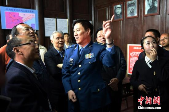 资料图:朱和平等参观“水田会议”会址。中新社发 李仁安 摄