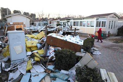 12月22日,银湖俱乐部内,被拆除的“房车”。此处上百“房车”因占用集体土地被要求搬离。本版摄影/新京报记者 侯少卿