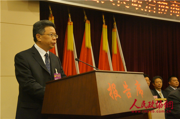 新当选的第八届海沧区政协主席吕永辉在闭幕式上讲话。记者 照宁 摄