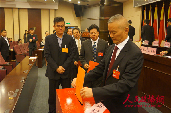 大会通过无记名投票等额选举方式选举产生第八届海沧区政协主席、副主席、秘书长及常务委员。(记者 照宁摄)1