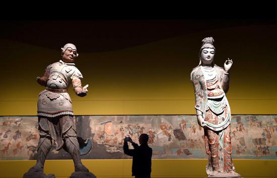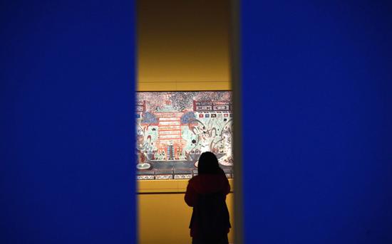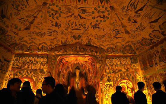 “藏经洞是敦煌石窟不可或缺的一部分,观众来参观藏经洞复原石窟,既可以欣赏石窟的建筑风格,从20幅绢纸画临摹复制品中一窥当年宗教、社会、生活的方方面面,还能从出土文献真迹中了解书法演变的过程?!钡耘舾嫠呒钦摺?/p>