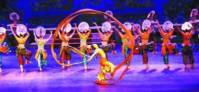 2016年,文化演出市场继续繁荣。图为中国经典舞剧《丝路花雨》时隔8年再次回到家乡甘肃敦煌首演,为观众奉献了一场经典精彩的丝路文化盛宴。光明图片