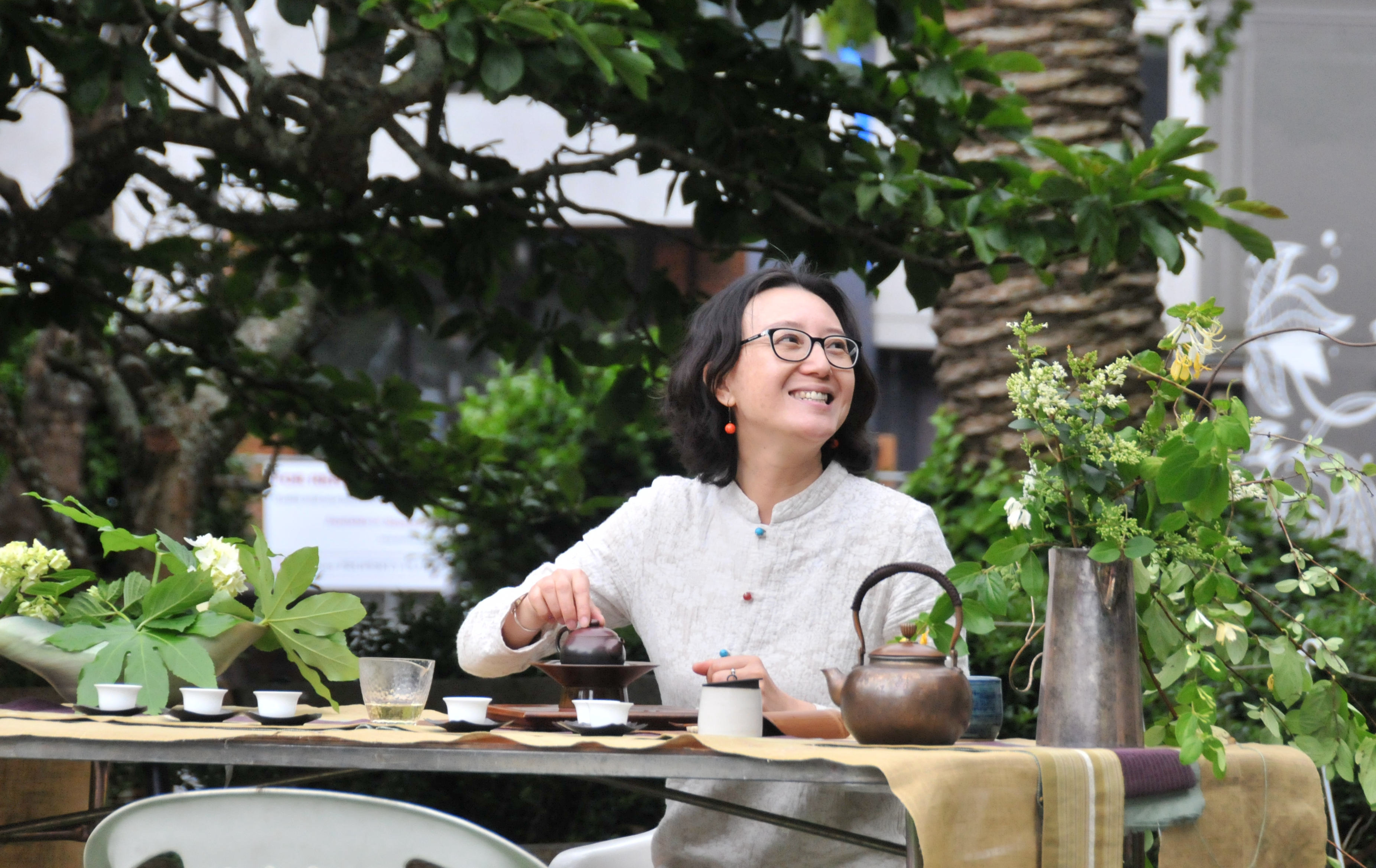 黄荔红身着中式布衣,留着过耳短发,谈起茶道,可以一讲便忘了时间。经营明舍一年间,从个人爱好发展成为宣扬茶文化的窗口,在东西方文明交流互鉴中,黄荔红收获了许多感动和感悟。