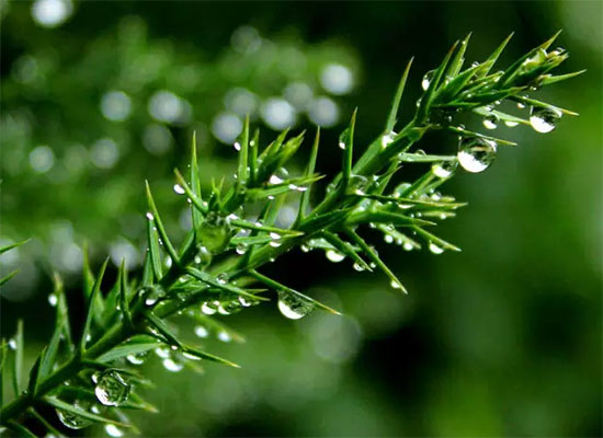雨声渐渐地住了,窗帘后隐隐地透进清光来。推开窗户一看,呀!凉云散了,树叶上的残滴,映着月儿,好似荧光千点,闪闪烁烁地动着。——真没想到苦雨孤灯之后,会有这么一幅清美的图画!