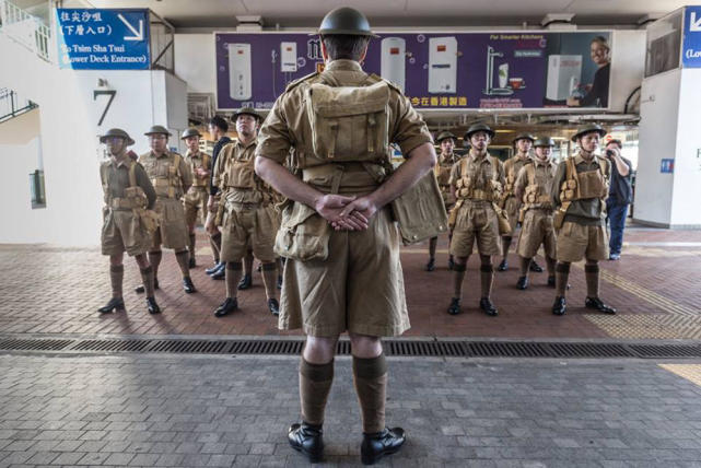 香港文汇网5日报道称,这20多名所谓的“武装军人”穿着棕色军服、黑色军靴,戴着墨绿色头盔,衣袖绣有HKVD(“香港义勇防卫军”)字样。在路人围观拍照时,约十名戴圆帽的导赏员趁机派发“时代思进”的卡片,讲解1941年12月8日香港被日军入侵的“防卫战历史”。导赏员自称,他们是民间团体,大部分成员是大学生,义务参与“时代思进”扮演“义勇防卫军”的活动,还说什么香港回归后取消了“光复纪念日”期,教科书、媒体又鲜见提及“港义勇防卫军”于是他们借“重光纪念日”75周年,向市民重提这段“本土”历史。在场搞手之一、负责向英国订购军服的Kevin还称,参加者要自费2600港元买军服,早前通过“时代思进”网上招募参加,希望演活一支所谓“真正香港人的军队”。