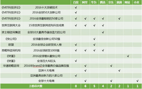 综合来看,这些出现在国际榜单中的中国企业,已开始扭转“中国制造”的固定印象,成为“中国创造”形象的典范。以百度为代表的人工智能技术,以华为、小米为代表的手机生产,以阿里、京东为代表的电商模式等,这些具有“中国创造”特色的企业,正得到国际越来越多的认可。未来,随着这些企业不断发展壮大,他们会走得更远,拥有更大的想象空间。