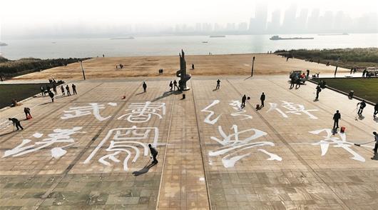 关键词:广场大的宣纸 扫帚般的毛笔 书坛何以多书妖