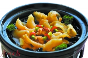 云耳花胶蒸鸡。广州日报记者陈枫 摄