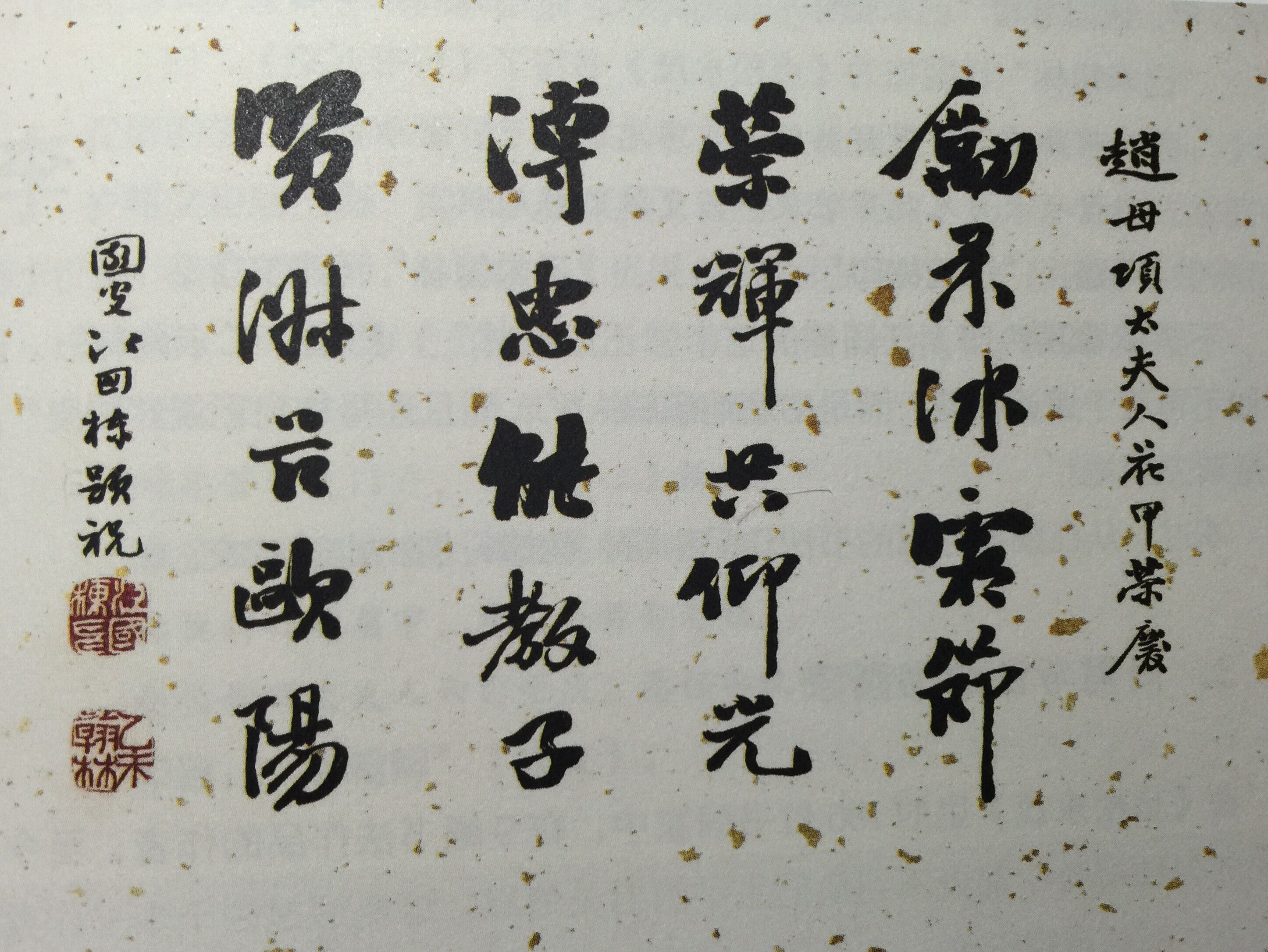 “己未翰林”江国栋为《贞松永茂》书写了《行书五绝》,曰:
