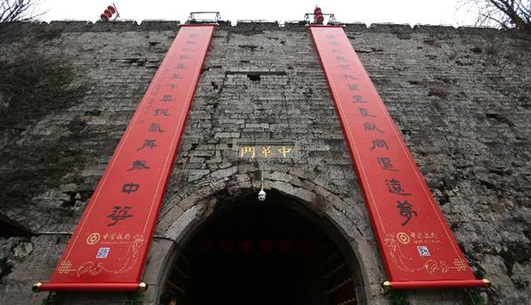 从1月7日起,南京十二座城门悬挂上祥和喜庆的巨幅大红春联,为古老的城墙增添了一抹亮丽的色彩。据悉,此次“城门挂春联,南京开门红”活动共收到海内外四千多位华人楹联爱好者的春联作品五千多件,经评选,其中的12件作品由12位著名书法家书写,并将采用不损伤南京明城城墙的特殊支撑结构挂上城门。