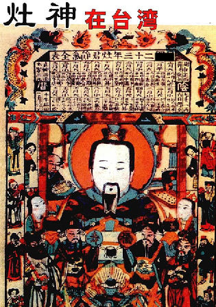 此外,台湾不少人家里都有灶王龛,设在厨房的北面或者东面,以供奉灶王神像。没有灶王龛的人家也会把灶王像贴在墙上。台湾的灶王像有两种,一种只有灶王一个人,另一种还画有“灶神奶奶”。