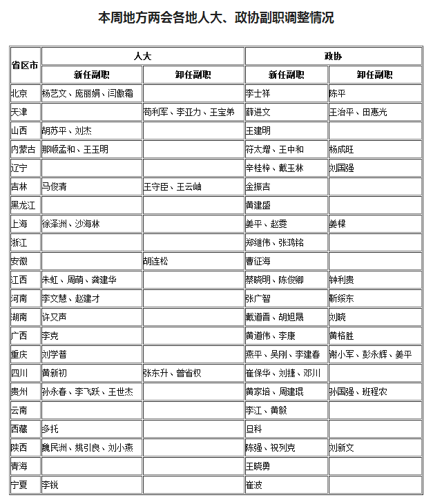 28省地方两会召开 多地人事密集调整