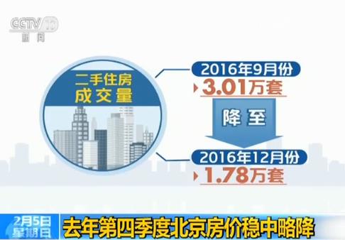 去年10月份以来,北京商品住房交易需求回落,量价平稳,市场逐步回归理性。数量上,去年四季度,北京商品住房成交6.96万套,较去年三季度减少28.4%,其中二手住房成交量从去年9月份的3.01万套降至12月份的1.78万套,下降40.8%,需求过热态势得到明显缓解。而从价格来看,去年四季度价格稳中略降。12月份北京新建商品住房成交均价为3.82万元,较9月份的3.88万元小幅下调。