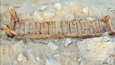 ②石头城遗址发掘出土的箱式木棺
