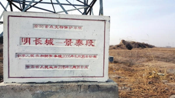 甘肃省政府立的明长城景泰段全国重点文物?;け?。甘肃日报 图
