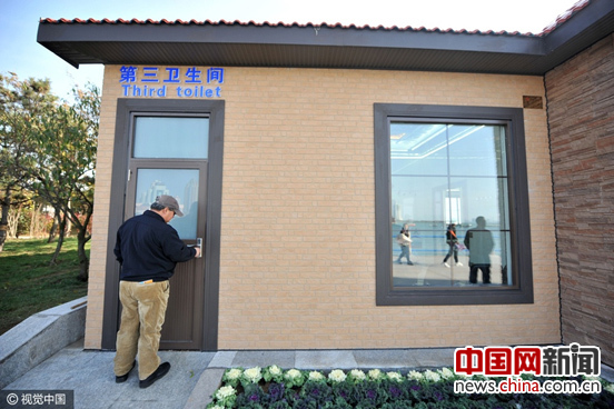 2016年11月20日,山东青岛,栈桥广场公厕单独开设的第三卫生间。图片来源:视觉中国