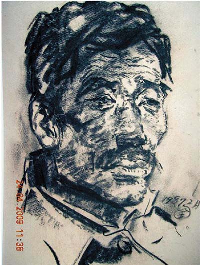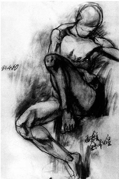 笔者在全显光老师指导下完成的人体写生 木炭 1981年