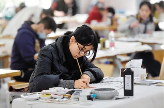2月7日,考生在中国美术学院的杭州考点参加中国画科目考试。 黄宗治/摄