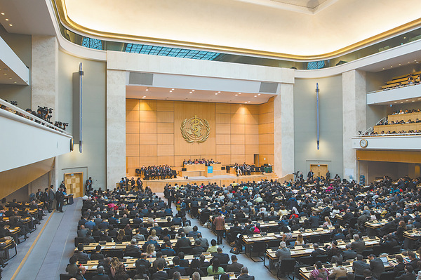图为去年世界卫生大会在日内瓦召开时的场景。