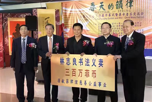 由中国驻菲律滨大使馆主催,由菲中机构菲华商联总会、菲中一带一路经贸文化促进会、菲律滨友好基金会、菲律滨中国华东联谊总会、菲华新联公会、旅菲各校友会联合会、中国厦门市书法家协会、中国厦门大学艺术学院、中国厦门闽台书画院、中国同安罗汉山莲花书院、富德胜集团、菲律滨安海经贸文化促进会、马尼拉艺文会馆、菲华电视台联合主办的《春天的韵律---林志良慈善书法展暨菲中音乐交流会》于2月12日下午在菲华商联总会一楼展览厅正式开幕!