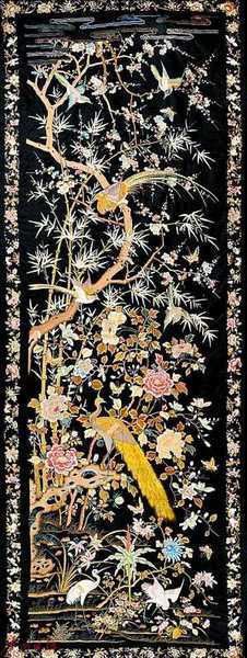 清 黑地粤绣“五伦图”挂屏