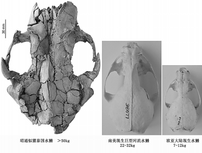 昭通水獭与现生水獭头骨大小和体重对比图 王晓鸣供图