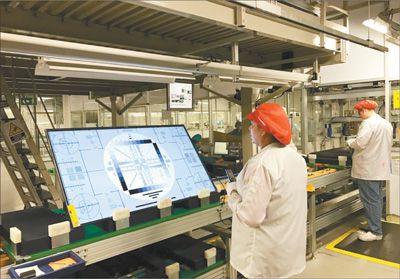 海信的技术优势也给墨西哥工厂带来变化。车间里新建的3条自动化生产线,大大提升了效率。一块液晶面板,只要放入生产线,就可以翻转,自动卡合,工人主要负责流程控制,甚至加工好的整机都可以自动包装。50英寸的液晶电视,人均单小时产量由原来的1.55台提升到4.31台。