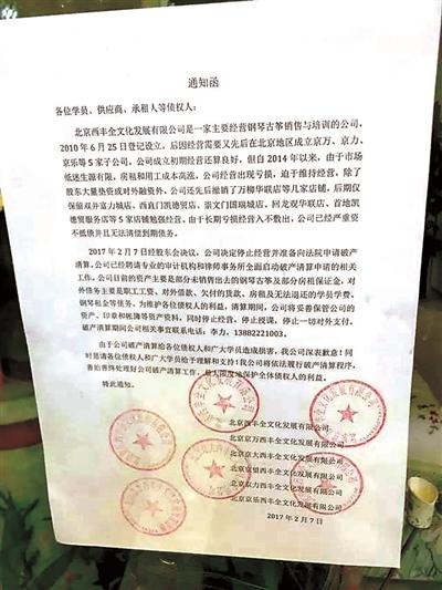 昨天“疯狂钢琴”总经理李力透露,正在继续统计学员相关信息,预计3月中旬向法院申请破产清算。