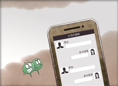 2016年6月20日下午5点多,锡城一家公司的顾总、李总主动来加会计钱某的微信。顾总是公司的副总经理,李总则是公司的法人代表。第二天上午9点30分左右,钱某被顾总拉入微信群中,群名正是公司的名字??次⑿湃褐卸际枪镜脑惫ぃ骋晕馐枪ぷ魅?。