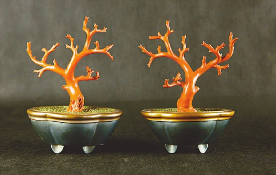 珊瑚盆景两件套(天然大漆) 1932年至1955年