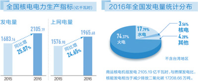 王毅韧介绍,“十二五”期间,我国核电机组并网运行17台,开工建设13台,在建规模世界第一。核电自主创新体系不断完善,核电关键设备和材料国产化率显著提高。具有自主知识产权的“华龙一号”三代核电走出国门,国内、国外同时开工建设,为我国核电今后的安全高效发展打下了坚实基础。