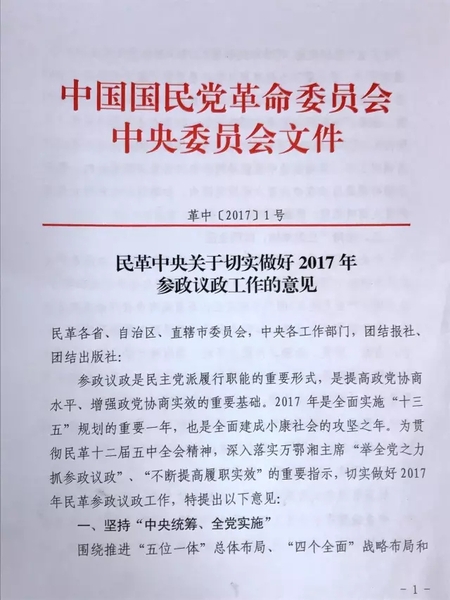 2月3日,春节后上班第一天,《民革中央关于切实做好2017年参政议政工作的意见》正式向民革全党下发。