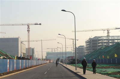 一路向东,过东六环后至潞城镇郝家府村,行政办公区的部分办公楼主体结构已封顶。这里,距通州北苑不到10公里。