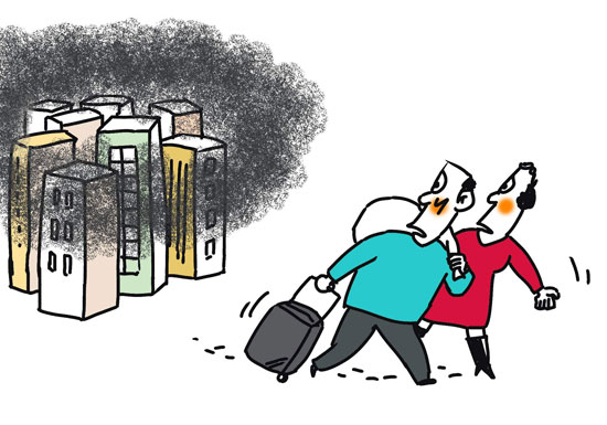 这个冬天,全国多地遭遇雾霾天气。你认为雾霾对工作生活影响大吗?近日,中国青年报社社会调查中心通过问卷网,针对2000名现在或曾经居住在北京等雾霾较严重城市的受访者进行的一项调查显示,14.0%的受访者已经离开雾霾严重的城市去了空气较好的地方。要留住城市人才,77.2%的受访者认为应加大治理力度,让人们看到空气质量好转的可能。