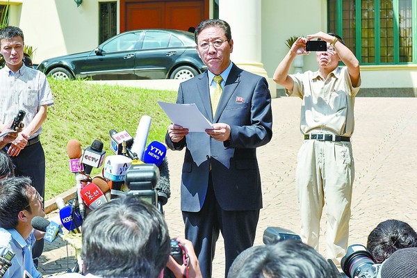 朝鲜驻马大使姜哲20日在吉隆坡召开新闻发布会。