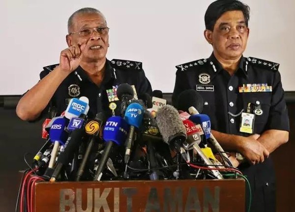 马来西亚副警察总长诺拉昔(左)19日在发布会上