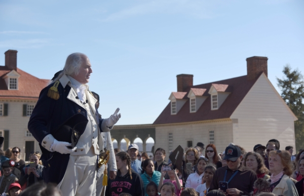 2月20日,在美国弗吉尼亚州弗农山庄,演员装扮成华盛顿总统参加活动。