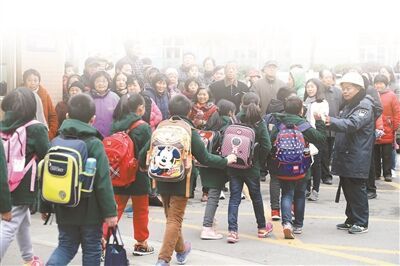 放学后走出校门的孩子们。 刘 莉摄