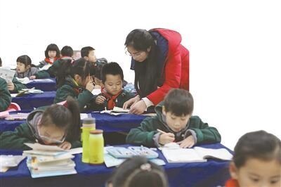 正常放学时间之后仍留在学校的孩子在老师辅导下完成作业。 刘 莉摄