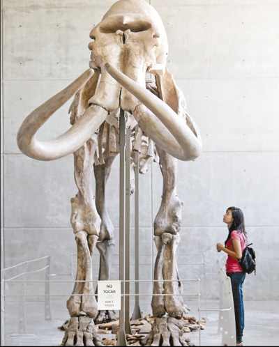 墨西哥阿卡普尔科博物馆展出的完整猛犸象骨骼化石,该化石是1990年在墨西哥考古挖掘中发现的。资料图片
