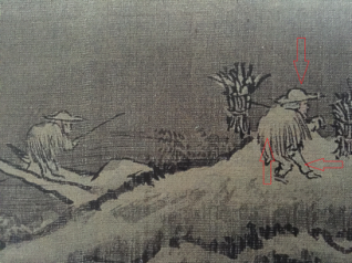 汉族渔夫戴斗笠,蓑衣。以上构图是符合元代服饰型制的。