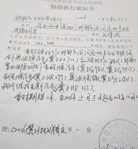 邯郸市中院对烂尾的现代系列住宅项目查封冻结通知书。