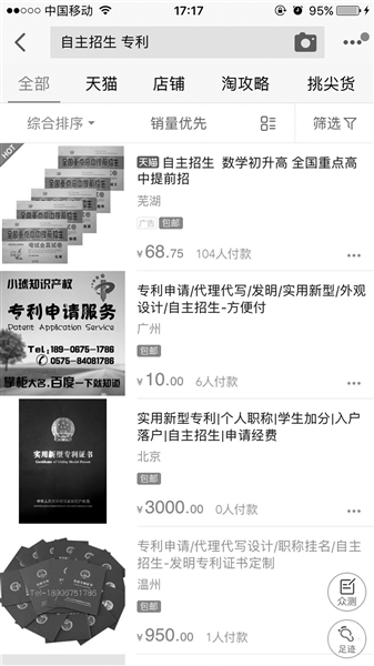 2017年的高校自主招生即将拉开大幕。在往年自主招生中,不少高校都将获发明专利或有发明成果列为自主招生报名资格的条件之一,而这一条件也催生出了一个“专利买卖”、“专利办理”的市场。北京青年报记者了解到,一些专利代理公司声称可提供专利申请和转让服务,以帮助考生获得自主招生的“敲门砖”。专家表示,专利允许转让,也不会对被转让人的资格进行审查,但自主招生的高校应在这方面加强管理。