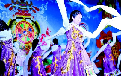 2月27日是藏历火鸡新年,各地藏族群众以独具特色的形式欢度这一重要的传统节日。图为北京西藏中学的师生欢聚一堂,载歌载舞,欢度藏历新年。齐波 摄