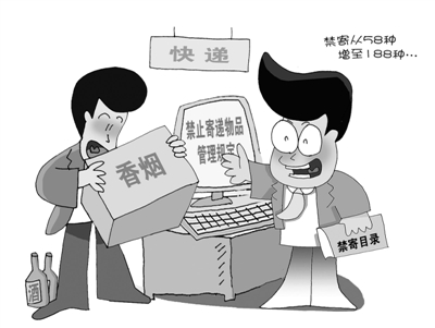 最近,很多人在邮寄香烟、白酒时发现,许多快递公司有了限制。原来,国家邮政局等三部门日前联合发布的《禁止寄递物品管理规定》明确,邮寄香烟不能超过两条、白酒不能超过56度、手机只能陆运……另外,快递禁寄从58种增至188种。此外,加大了对于违反禁止寄递物品的责任追究力度。如果寄递企业发生违规收寄行为,且造成严重后果,将可能面临最高50万元的行政处罚。